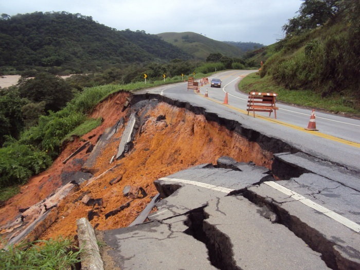 Na BR-393 o asfalto cedeu e houve cerca de 20 deslizamentos em toda a estrada.
