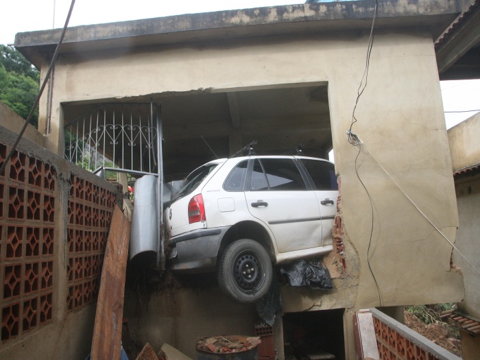 A força do deslizamento arrastou carro para dentro de uma casa na localidade Jamapará