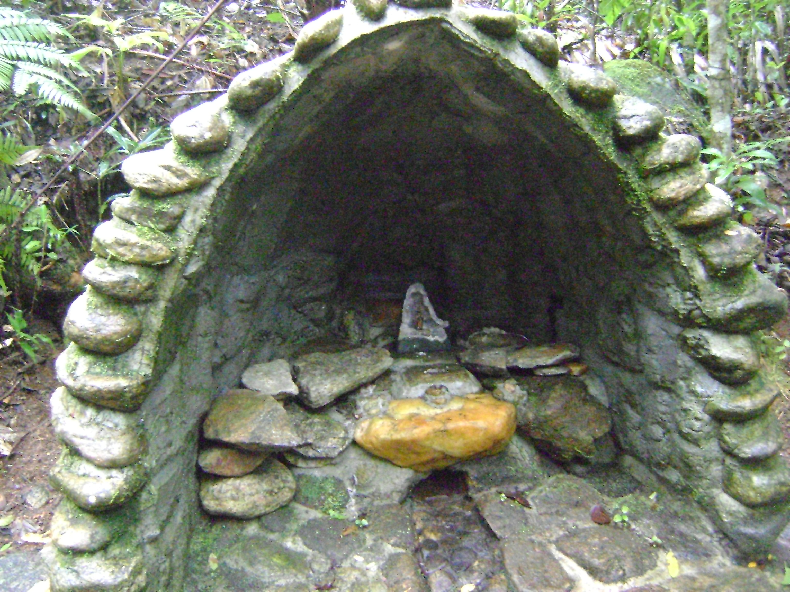 Em certo ponto do caminho não se pode, mas seguir nos veículos então começa a caminhada, uma belíssima caminhada no meio da mata fechada, passando por um riacho onde dizem que era feita a extração de ouro e que muitos garimpeiros ali brigavam até a morte, nesta localidade foi construído um pequeno santuário.